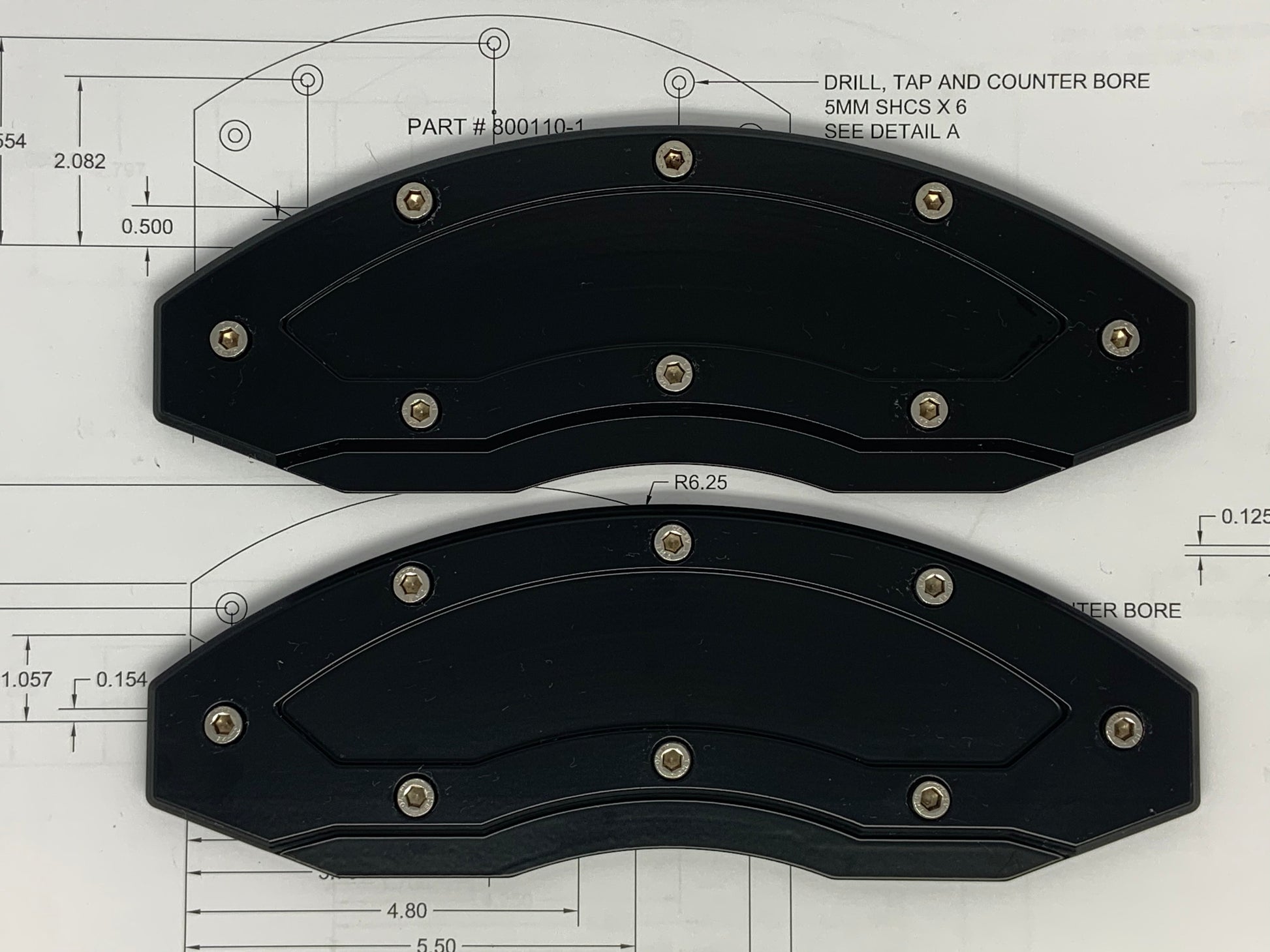 All of our Overlays are machined from a single piece of .250” thick 6061 T6 Aircraft Aluminum, by a (CNC) machine.